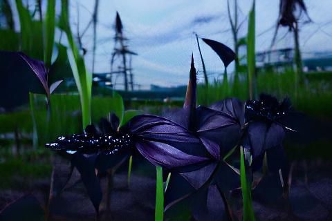 A striking picture of a black lily set against a vivid purple sky. The digital artwork presents a surreal and captivating floral scene, emphasizing contrast and color.
