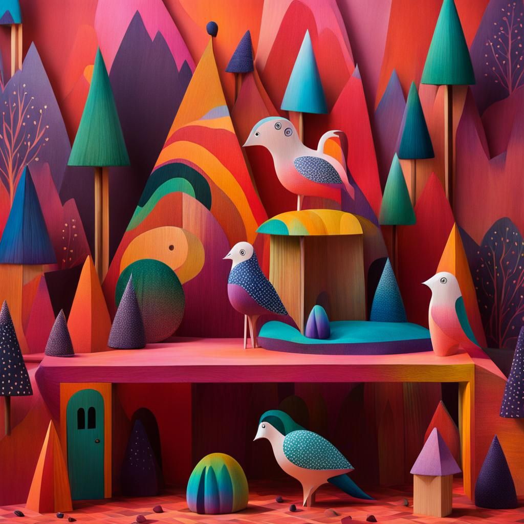 Create your own unique and colorful wooden bird sculptures with our free AI image generator.