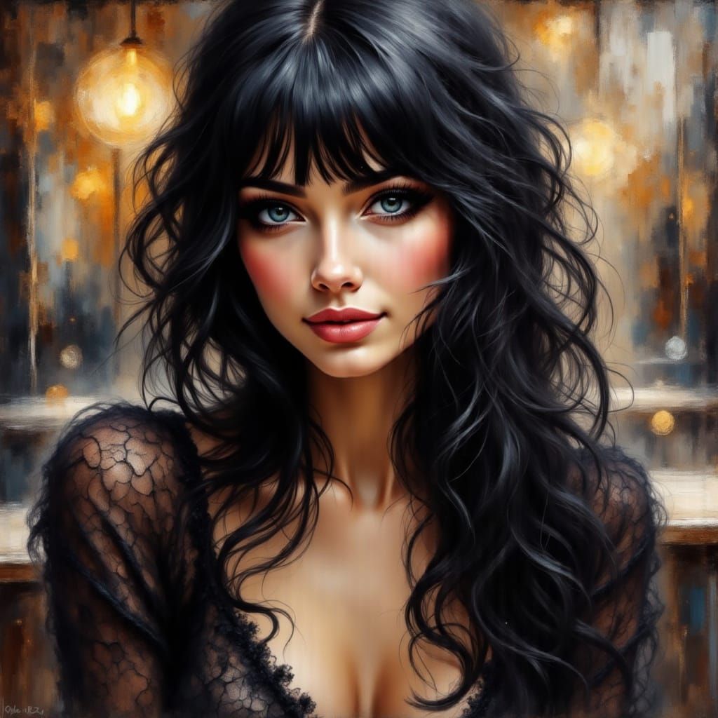 This image showcases a realistic portrait of a chic Parisian woman in elegant attire, smiling at the viewer. The artwork features enchanting details and soft lighting.