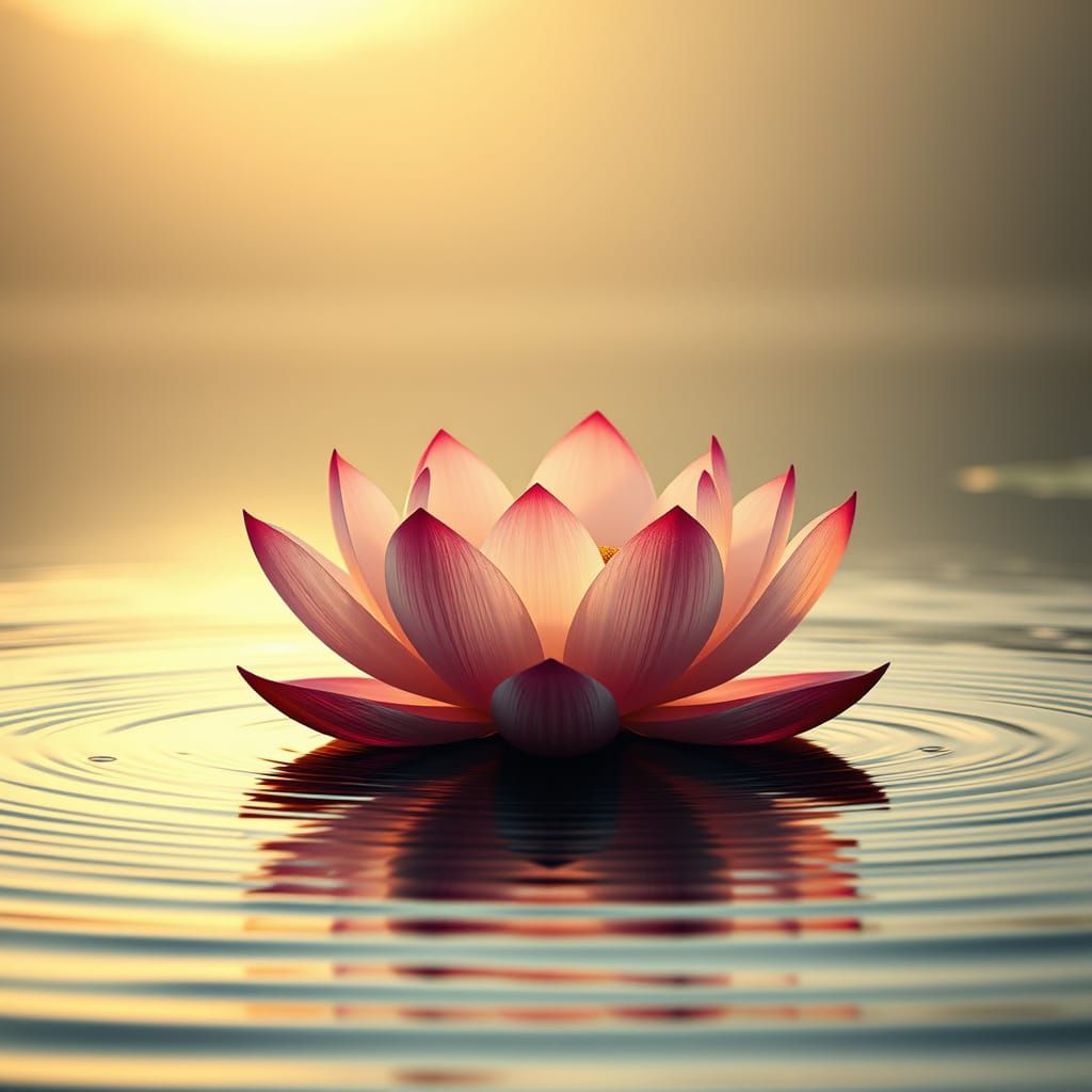 A majestic lotus flower floats on a tranquil lake, bathed in warm golden light, with delicate petals and intricate details, reminiscent of a maximalist neo-impressionist oil painting with textured, impasto layers, in stunning 8k resolution