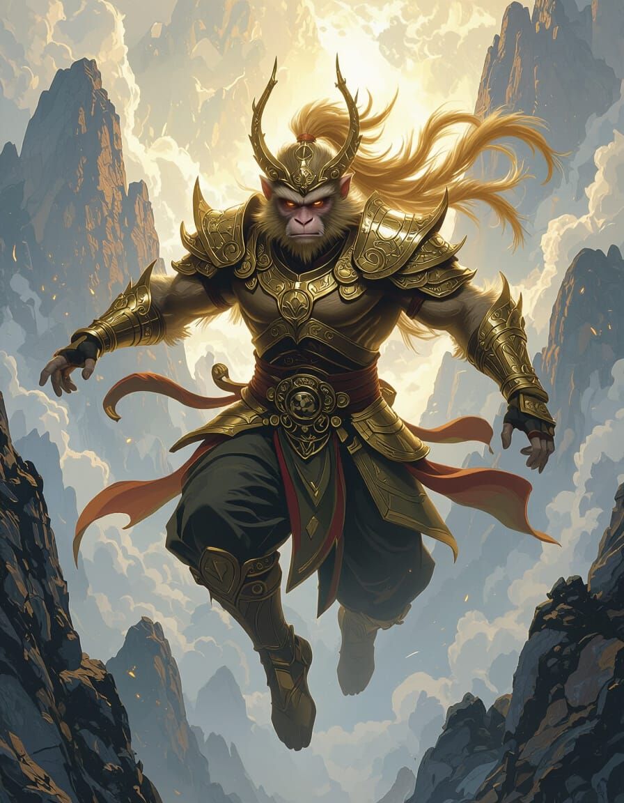 Generate your own epic fantasy images of the Monkey King, Sun Wukong, with our free and easy AI tool.