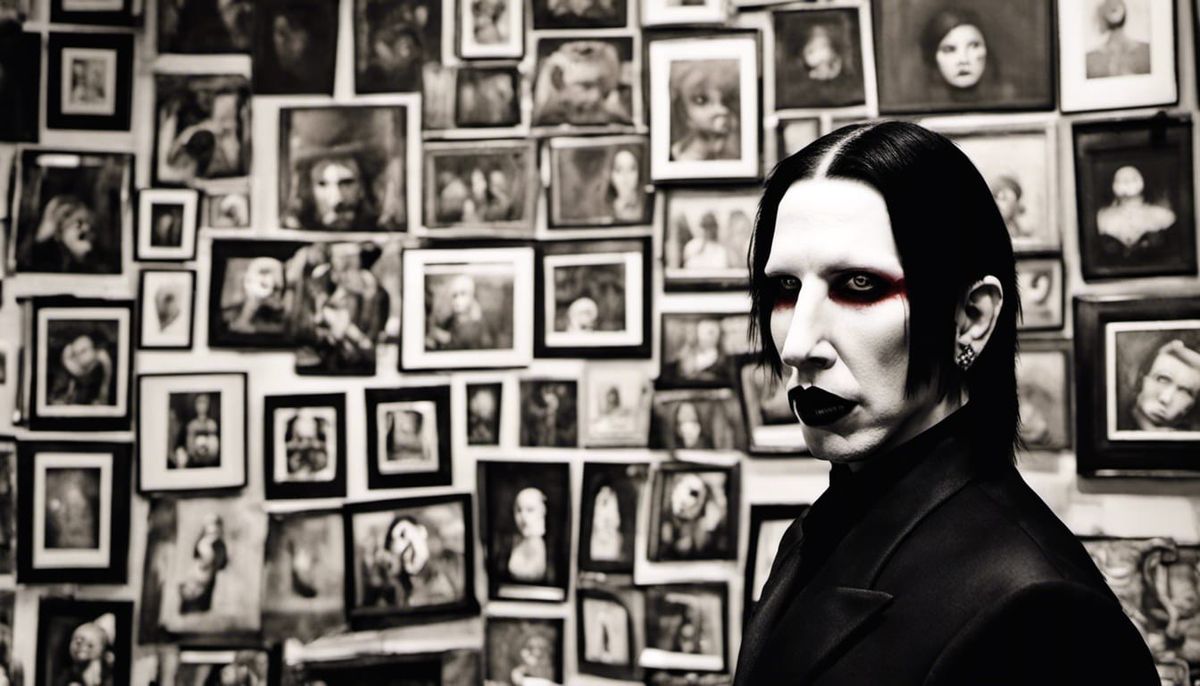 A hyperrealistic portrait of Marilyn Manson in a museum. The image is highly detailed with a cinematic and atmospheric horror aesthetic.
