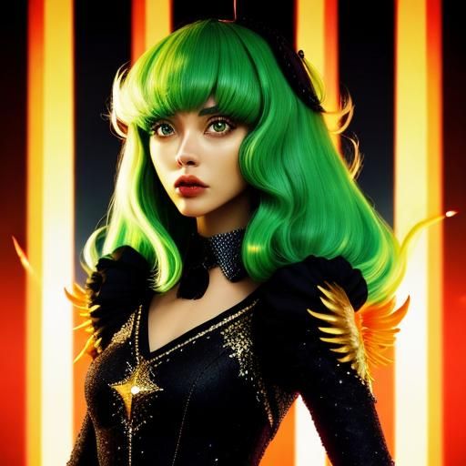 This image shows a surreal and vibrant abstract design. The artwork uses a vivid color palette of black, white, scarlet, azure, green, and yellow in a photorealistic style.