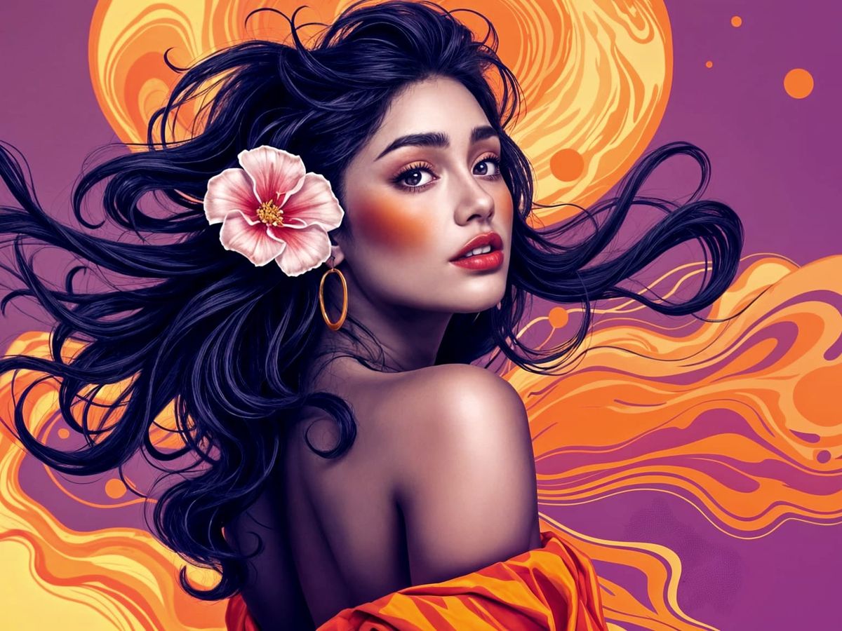 This image showcases a colorful piece of artwork created with a focus on the warm tones of purple and orange. A visually striking representation of artistic expression in a rich, dynamic palette.