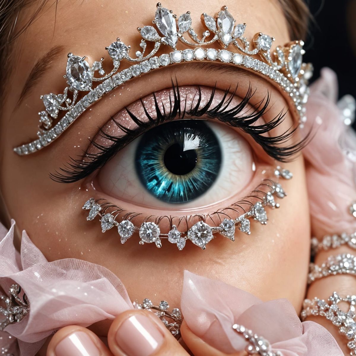 This image showcases a dazzling array of luxury items, including a handbag, high heels, jewelry, and a crown, all rendered with a shimmering, gem-like aesthetic.