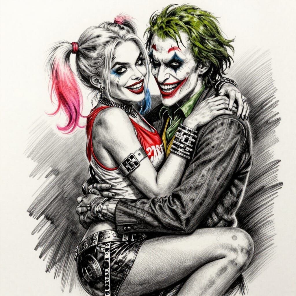 Easily design unique Harley Quinn and Joker tattoos with our free AI generator. Highly detailed and vibrant, just like this one!