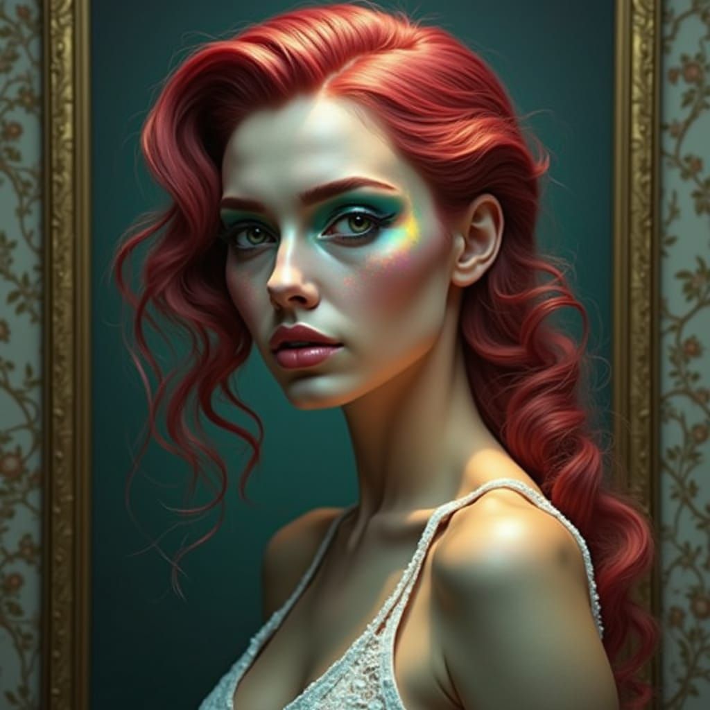 A hyperrealistic sculpture of a vibrant woman expressing emotion through vivid RGB colors. The image conveys introspection and symbolism with insane detail in an expressionist style.
