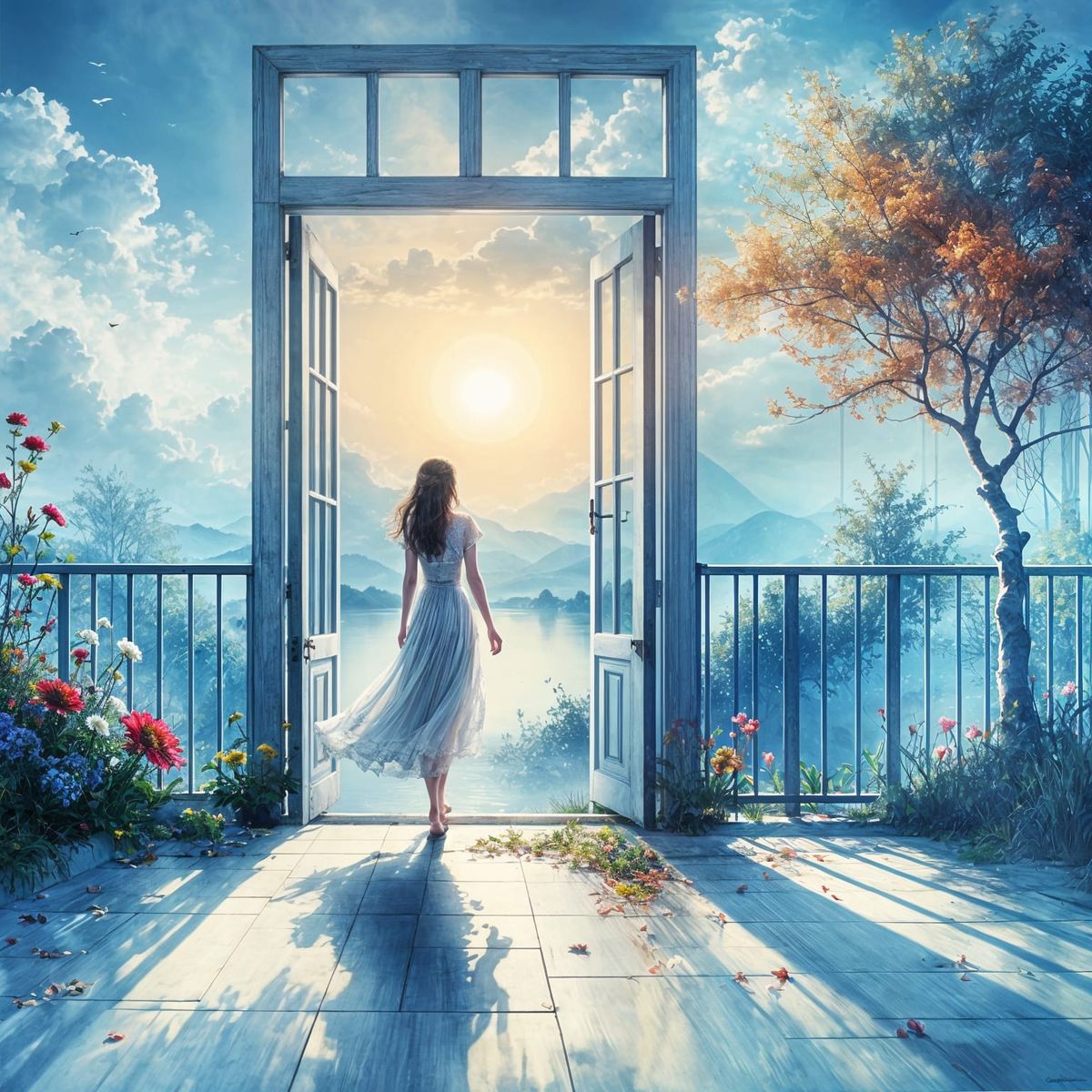 Abre la puerta y sal al nuevo día. Pronto levantará la niebla. El sol brillará con fuerza. Las flores perfumarán la mañana_028