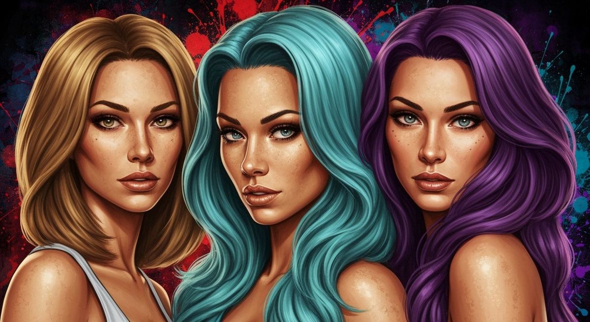 This image depicts a lively pajama party featuring popular celebrities. Rendered in a detailed comic book art style with high contrast and vibrant colors, it offers a hyperrealistic and cinematic visual experience.