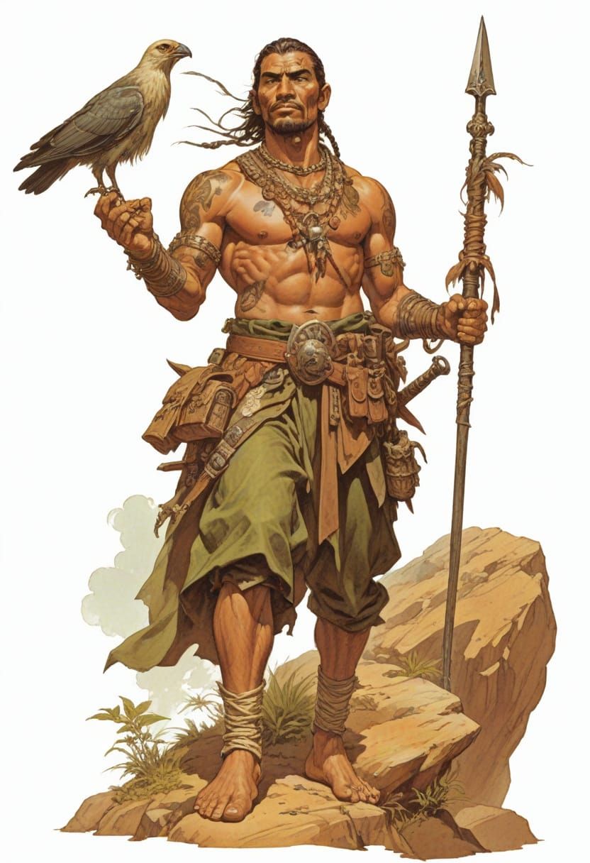 A detailed illustration of a lone survivor from a shipwreck, rendered in vibrant colors and bold lines, reminiscent of classic fantasy art.