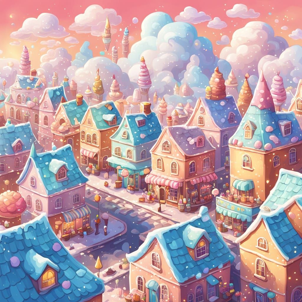 Create your own whimsical dessert cities with our free AI image generator. It's easy and fun!