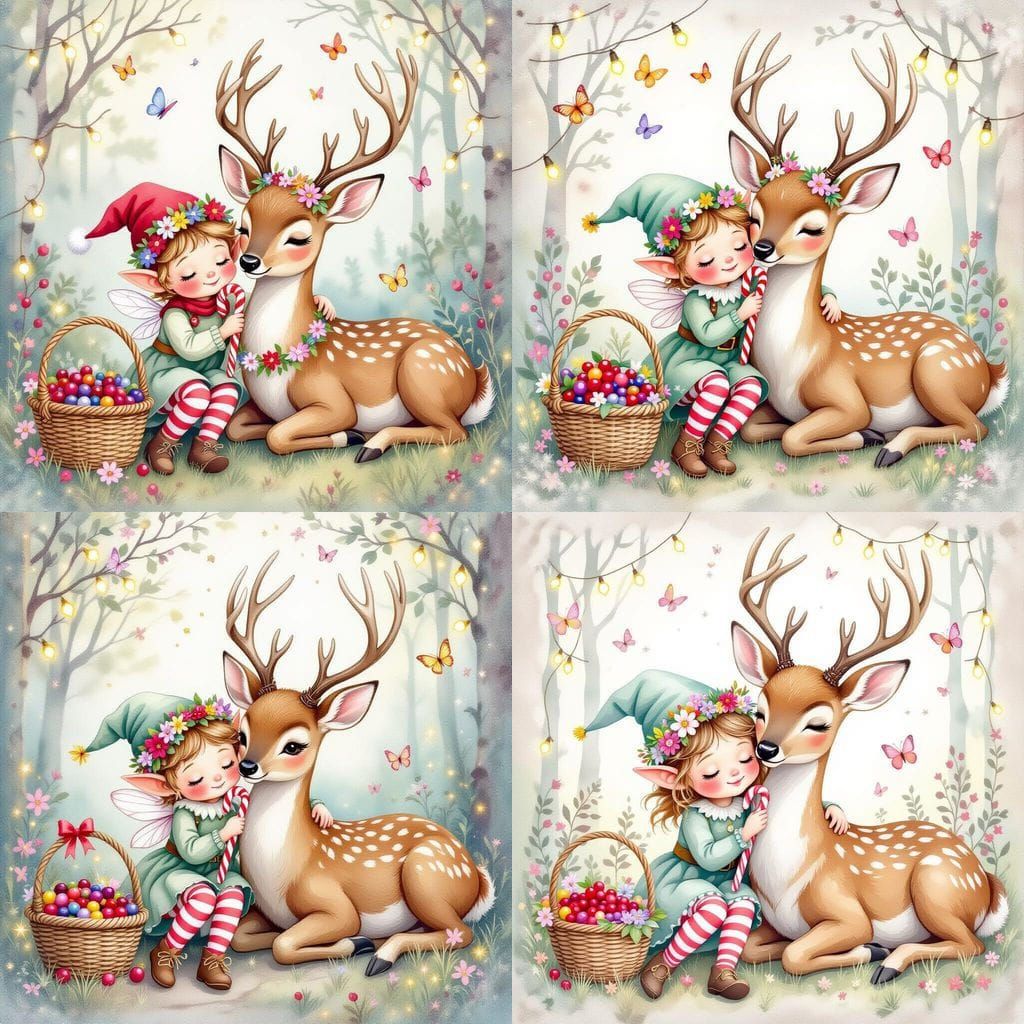 Generate your own unique whimsical scenes with elves and deer. Free and easy AI image creation.