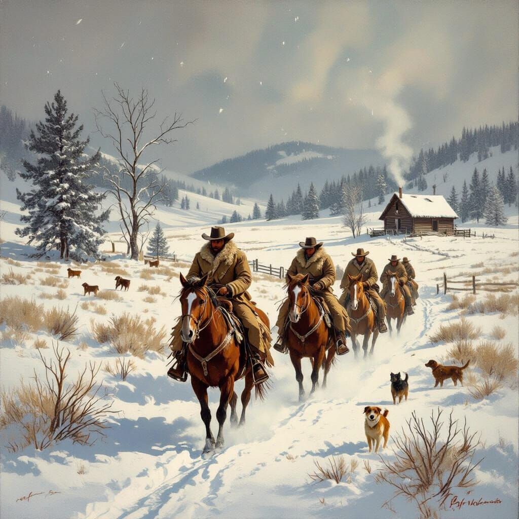 Generate your own cowboy blizzard images for free. Easily create scenes of high plains, cabins, and herds with our flexible AI tool.