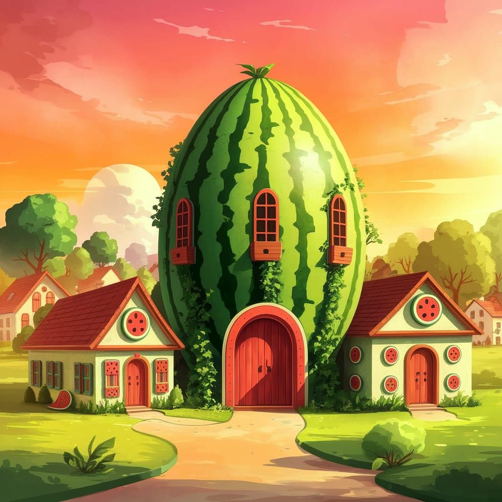 Easily create your own watermelon village images with our free AI image generator - flexible, easy, and fun!
