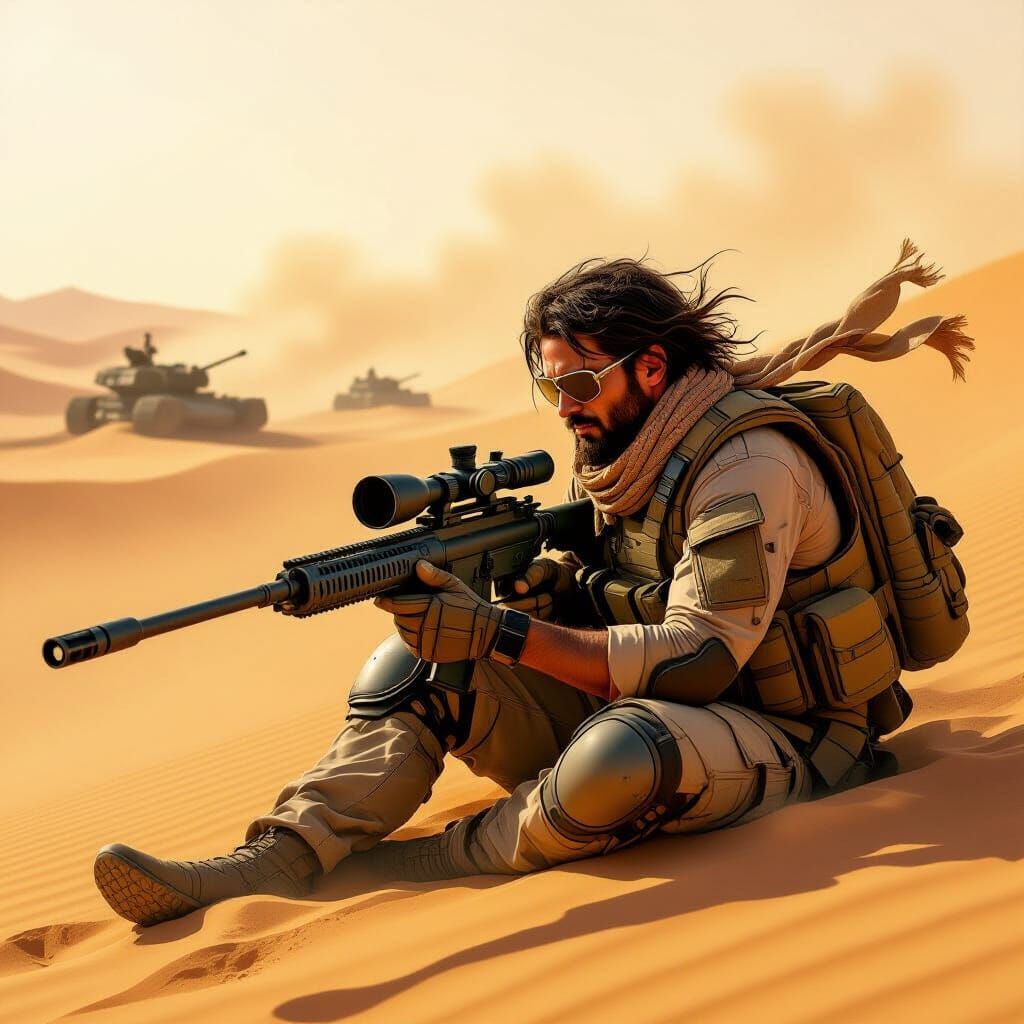 Create your own desert sniper images with our AI image generator. It's free, easy, and incredibly versatile!