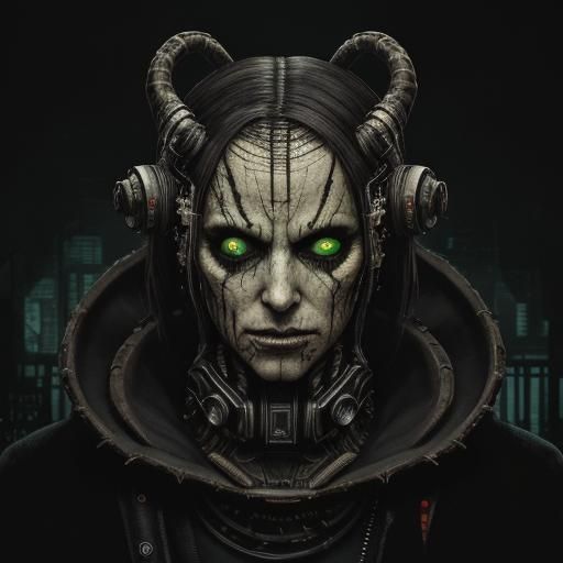 This image shows a demonic close-up in a dark, unsettling liminal space, created in an analog horror style. The image includes glitch effects, scan lines and elements of cyberpunk and biopunk aesthetics.