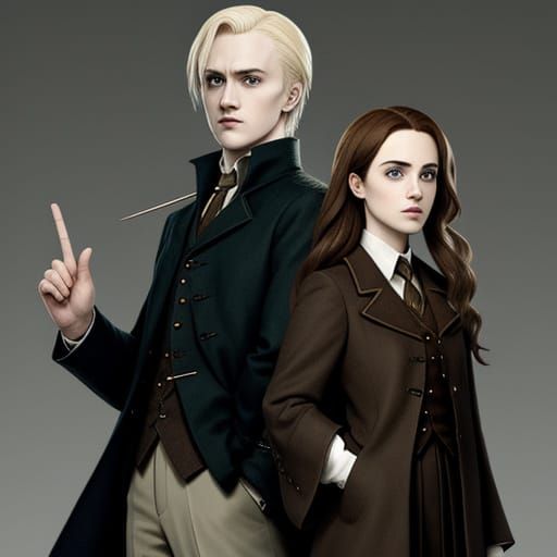 Generate unique images of Draco Malfoy and Hermione Granger in the Ministry, or create your own characters with our free AI tool.