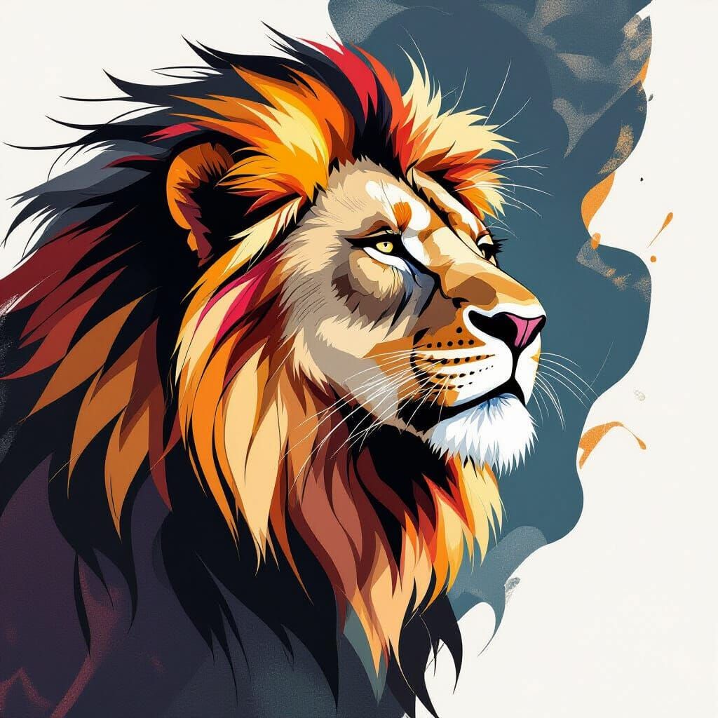 This image features a bold, single-line drawing of a lion's profile in a roaring pose. The striking aesthetic is reminiscent of fluid, expressive art styles.