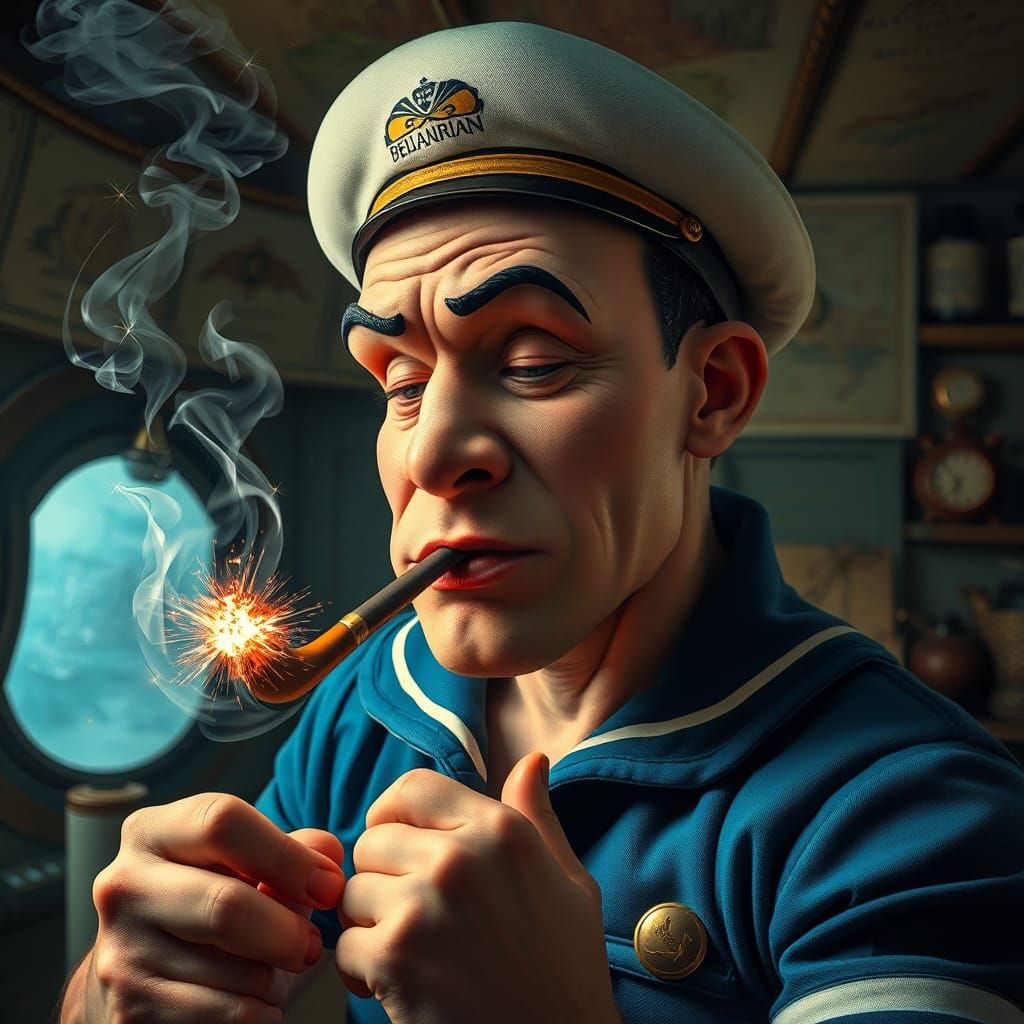 Create your own images of Popeye the Sailor smoking a pipe with our free AI image generator!