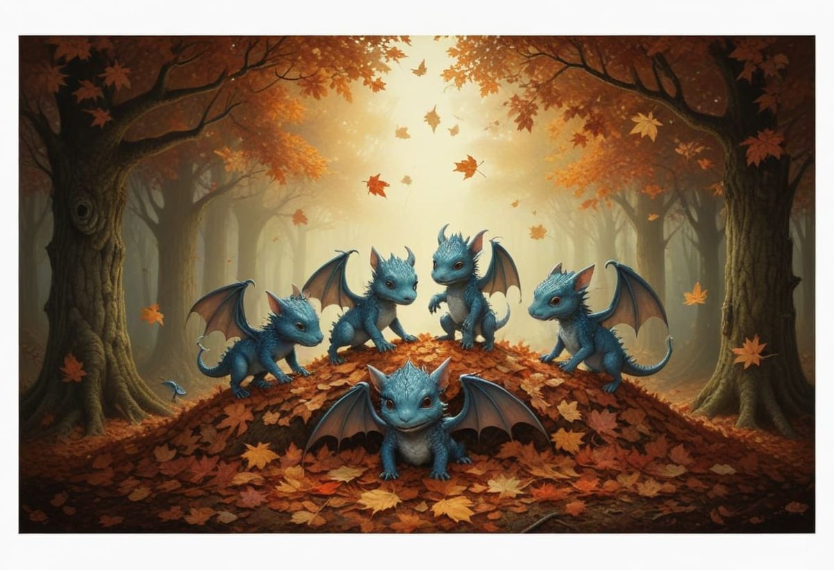 Generate your own adorable baby dragons having fun this autumn with our easy-to-use AI generator.