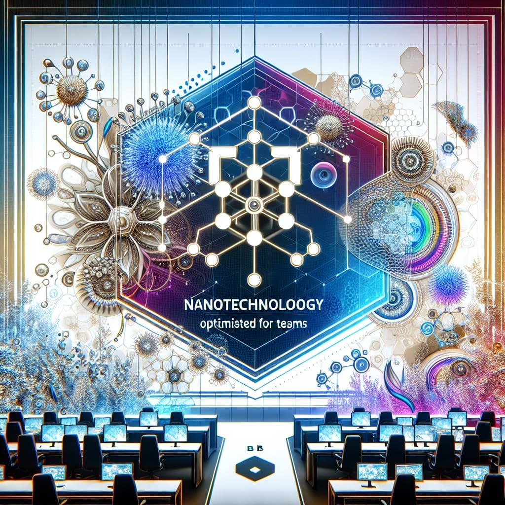 A sophisticated virtual background for video calls, featuring a bionano logo with geometric patterns. This matte painting uses a limited color palette and fantastical elements for a captivating look.
