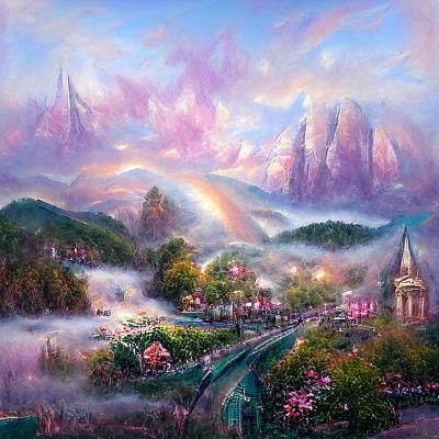 A vibrant landscape featuring rolling hills under a pastel sky. This ethereal fantasy evokes the colors of trans pride using hyperdetailed rendering techniques.