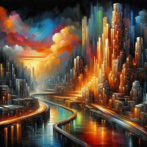 Easily create your own cityscape images with bold colors and neo-impressionist style using our free AI image generator