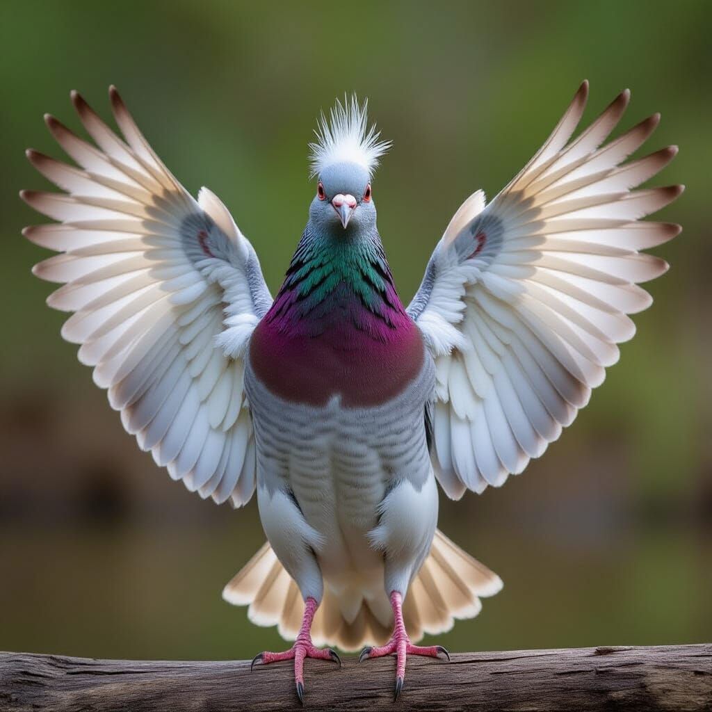 A fantastical hybrid creature with a pigeon head, capybara body, shark fin, and pigeon wings. This surreal, dreamlike artwork features vivid colors and dramatic lighting.