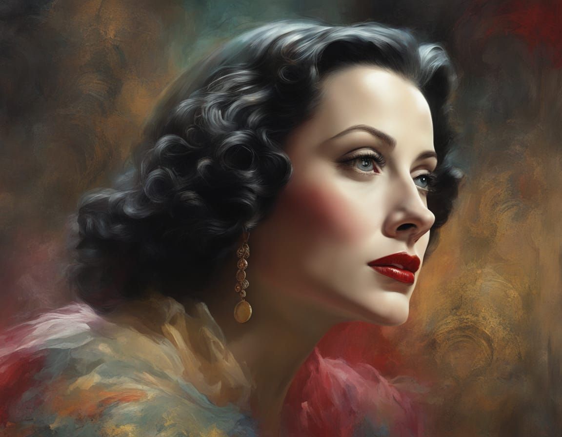 A dreamy portrait reminiscent of a 1930s movie poster. The image features hyperrealism with intricate details, rendered with a blend of impasto, chalk art, and oil gouache techniques in an ethereal, high-contrast style.