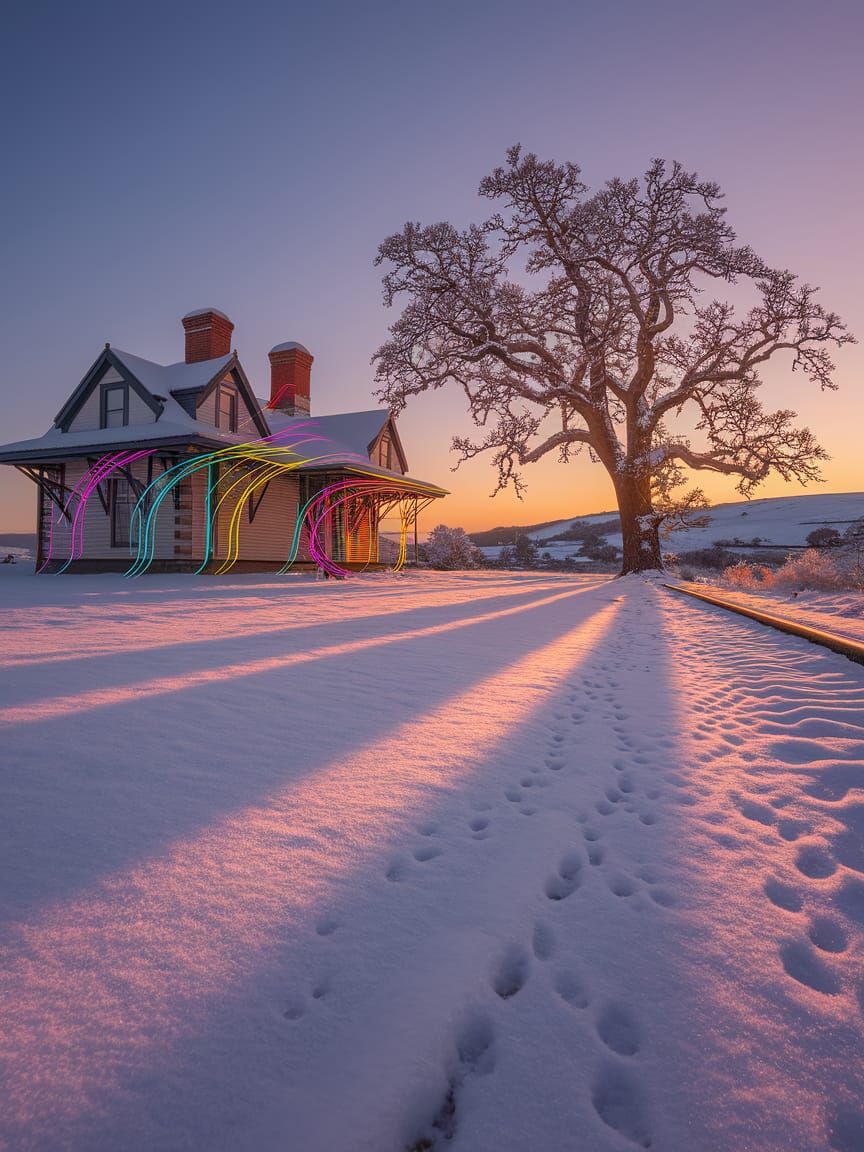 Generate your own vibrant winter railway scenes with AI. Easy, fast, and free to use!