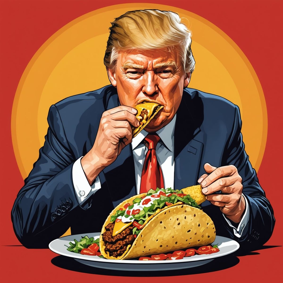 This image depicts Donald Trump enjoying a very large taco. The AI-generated image captures a humorous and unexpected scenario.