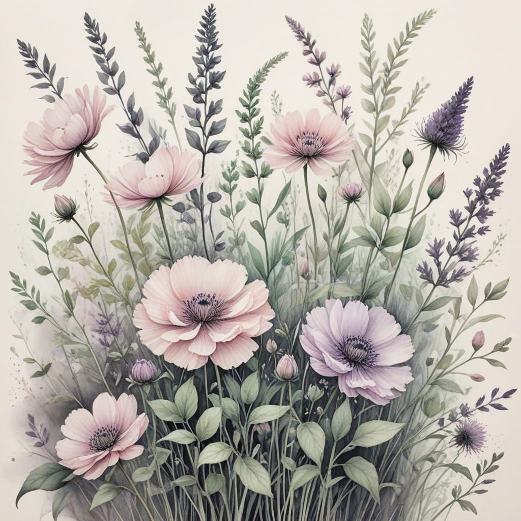 Easily design your own watercolor flower images with our free AI generator, featuring soft pastel hues and delicate styles