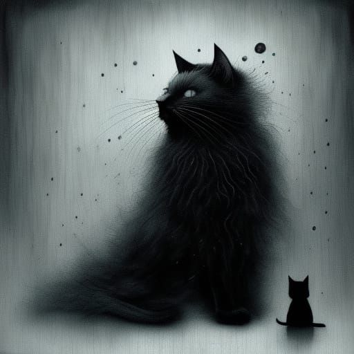 Easily generate your own surreal witch images with our free AI image generator, featuring grey fluffy cats and more