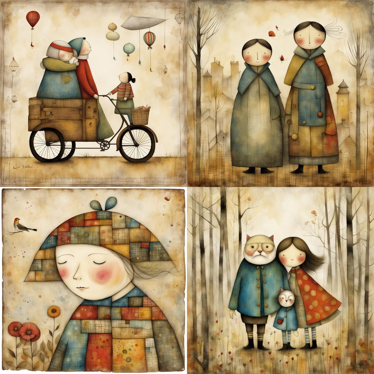 This AI-generated image blends the distinct artistic approaches of Luis Gabriel Pacheco, Tomie DePaola, and Anna Silivonchik, creating a unique visual narrative.