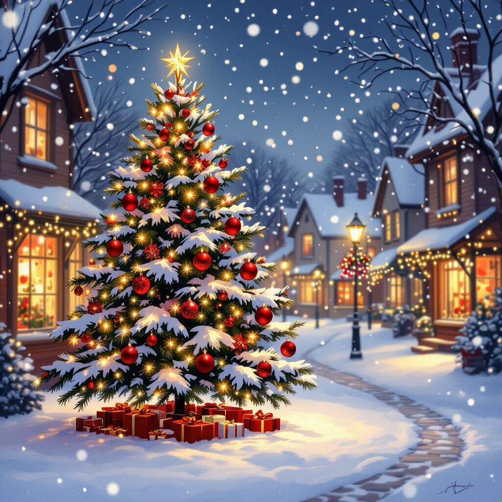 Generate unique Christmas tree images and festive town squares easily and for free with our AI generator.
