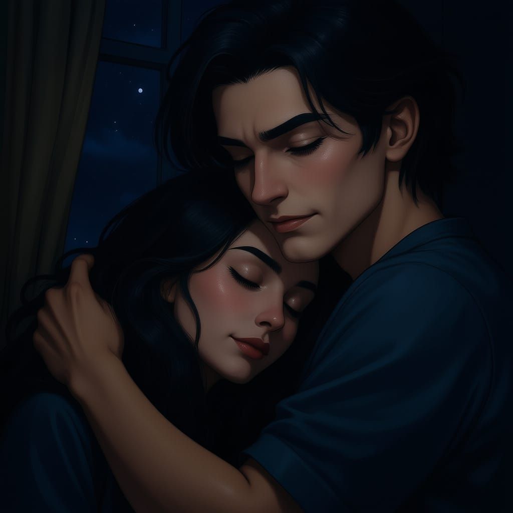 This image captures a tender moment of a man holding a sleeping child, bathed in soft morning sunlight. The scene evokes intimacy and healing with delicate color contrasts and a poetic mood.