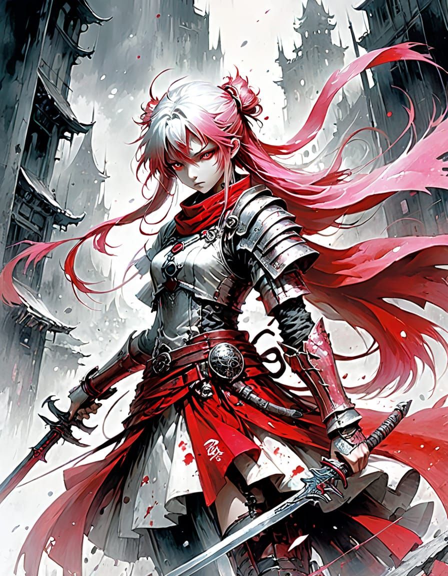 A vibrant abstract artwork featuring red, pink, and white hues. The image showcases fine details and complementary color schemes, resembling a digital painting.