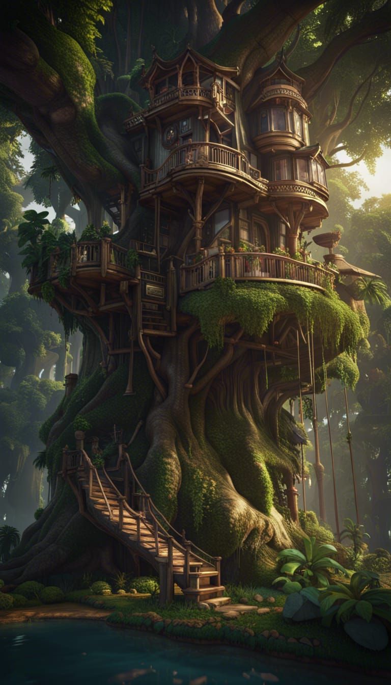 Design your own unique jungle tree house with our free AI image generator. It's easy and fun!