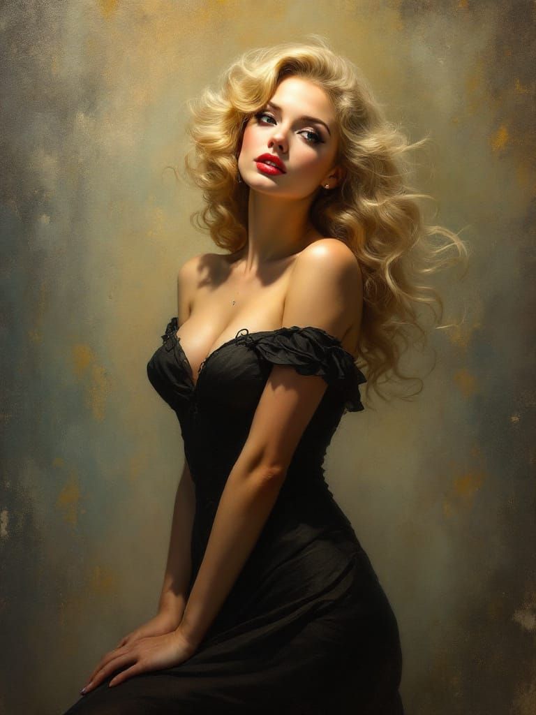 Generate your own striking portraits, featuring bold lips and bare shoulders, with our free AI image generator.