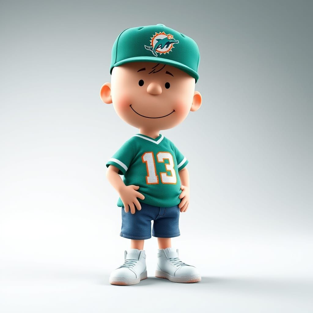 Create your own 3D Charlie Brown images with a Miami Dolphins theme using our free AI image generator.