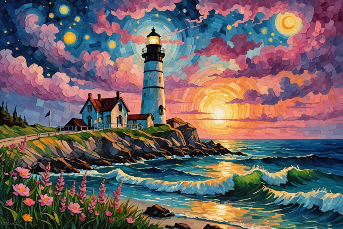 Create your own colorful lighthouse art in the style of Van Gogh with our free AI image generator!