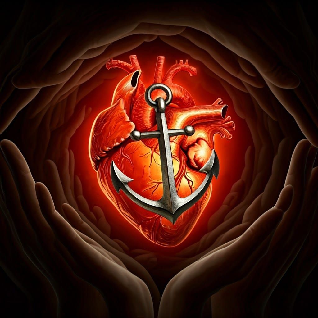 A vibrant surreal image shows a heart with an anchor inside, surrounded by hands. Gothic calligraphy spells out 'Family Support' in this colorful depiction of emotional well-being.