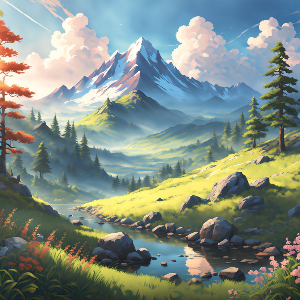 Easily generate your own anime-style mountain ranges with our free AI image generator - no artistic skills required!