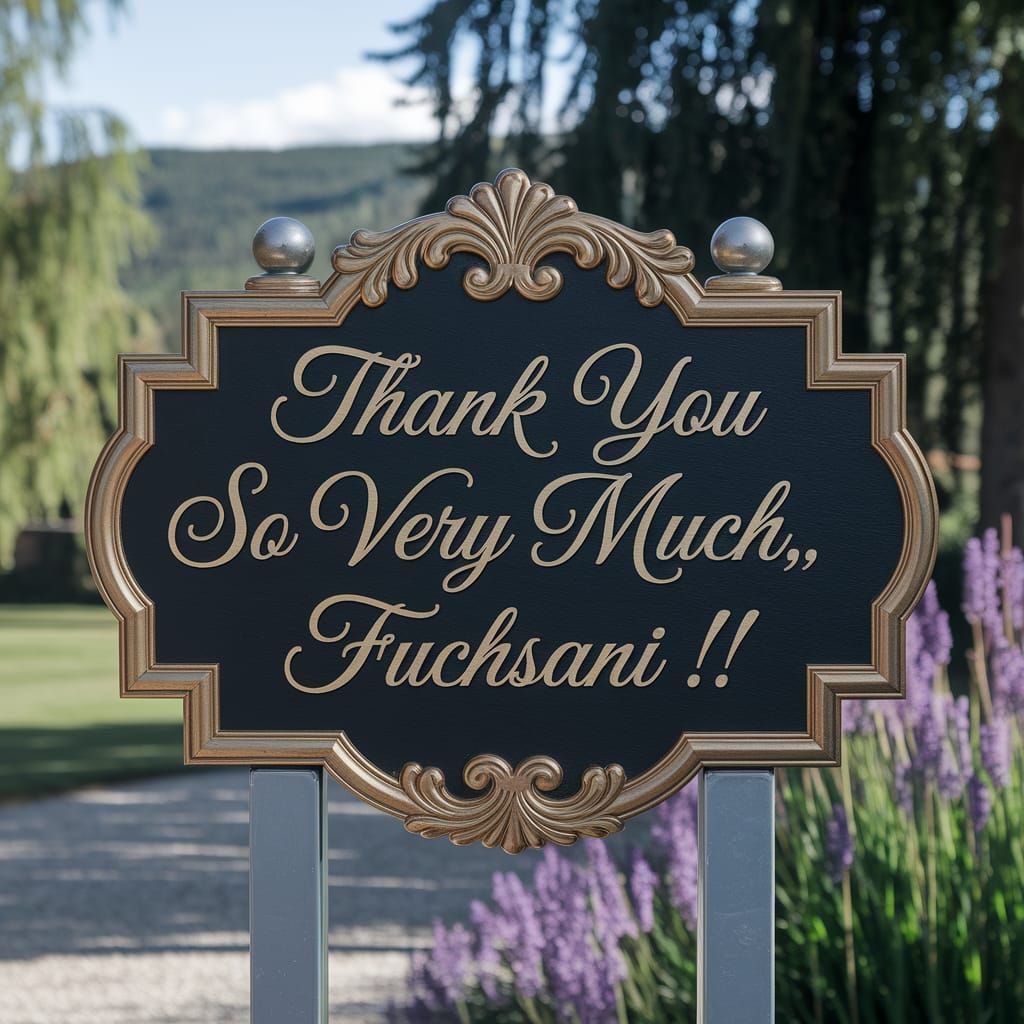 A stunning digital painting of a golden engraved sign in bridal script style font, mounted on silver posts, with intricate details and a cinematic atmosphere.