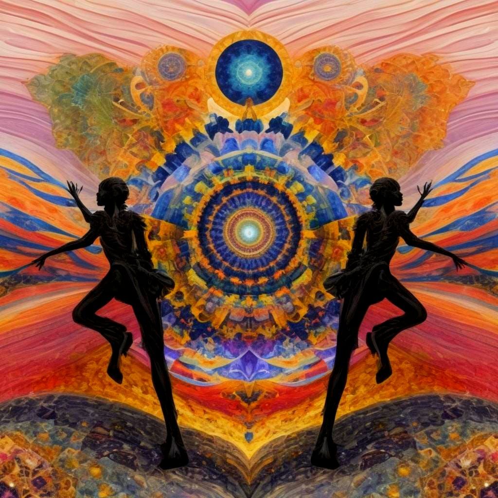 This image shows a kaleidoscopic design with fractal and mandala elements. The symmetrical tile pattern creates a vivid and surreal visual experience.