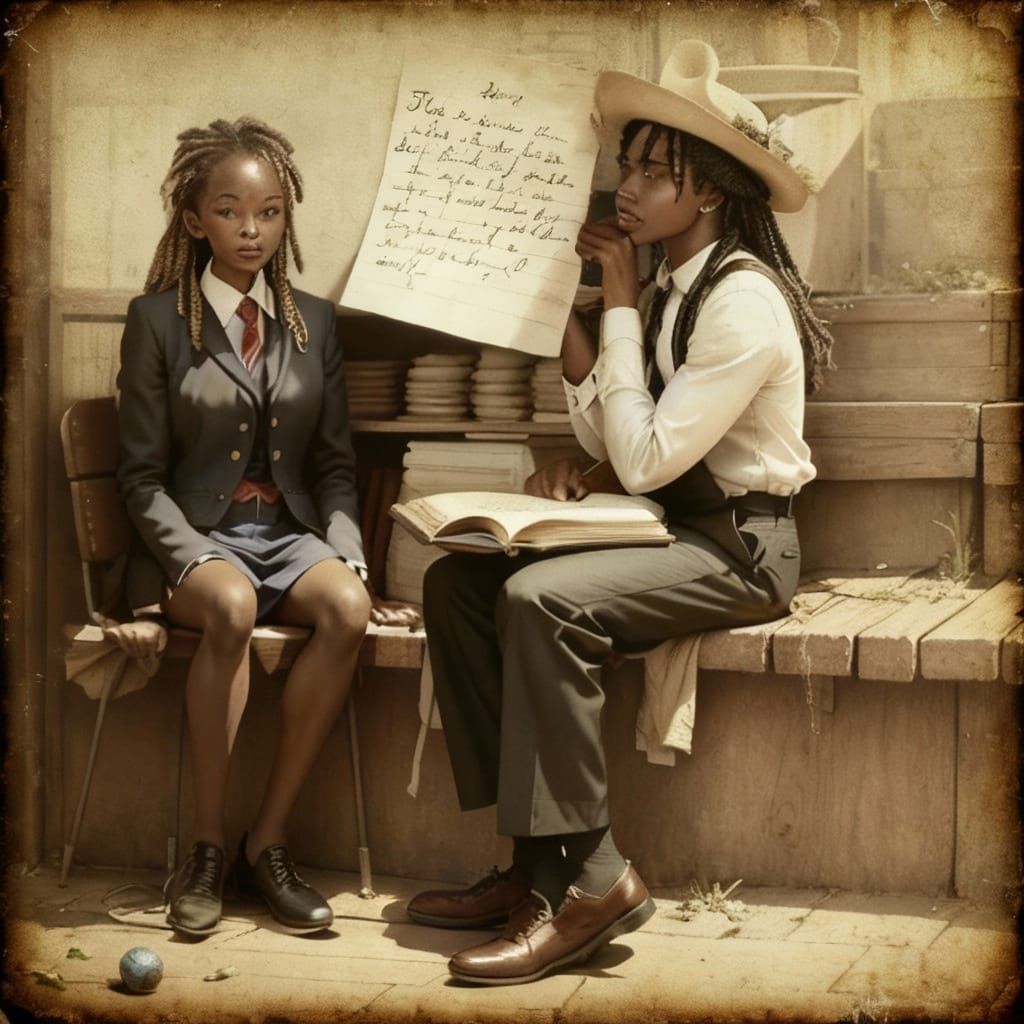 This image features a child's letter on delicate paper, set against a pale backdrop. Rendered with textures and shadows reminiscent of old photography, it evokes a vintage feel.