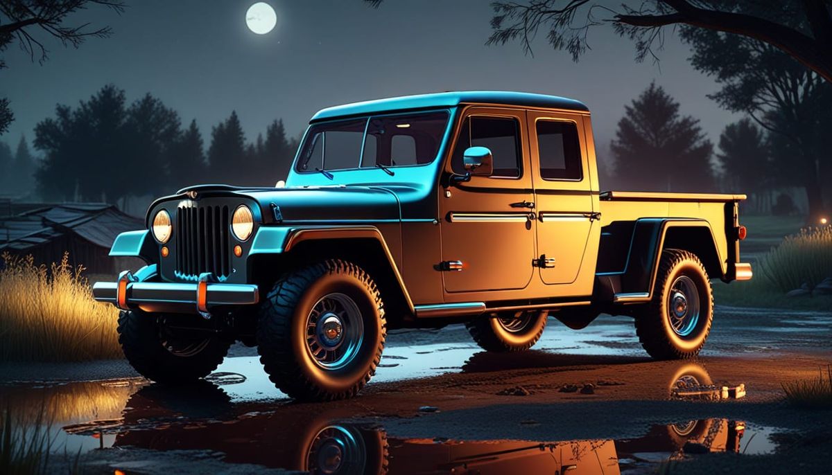 Easily modernize your Willys Jeep with our free AI image generator, perfect for farm-themed designs