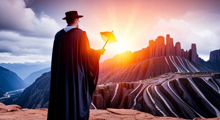 A striking portrait of a warlock casting a spell, set against a mountain castle backdrop. This image showcases intricate details and hypermaximalist elements in a painterly style.