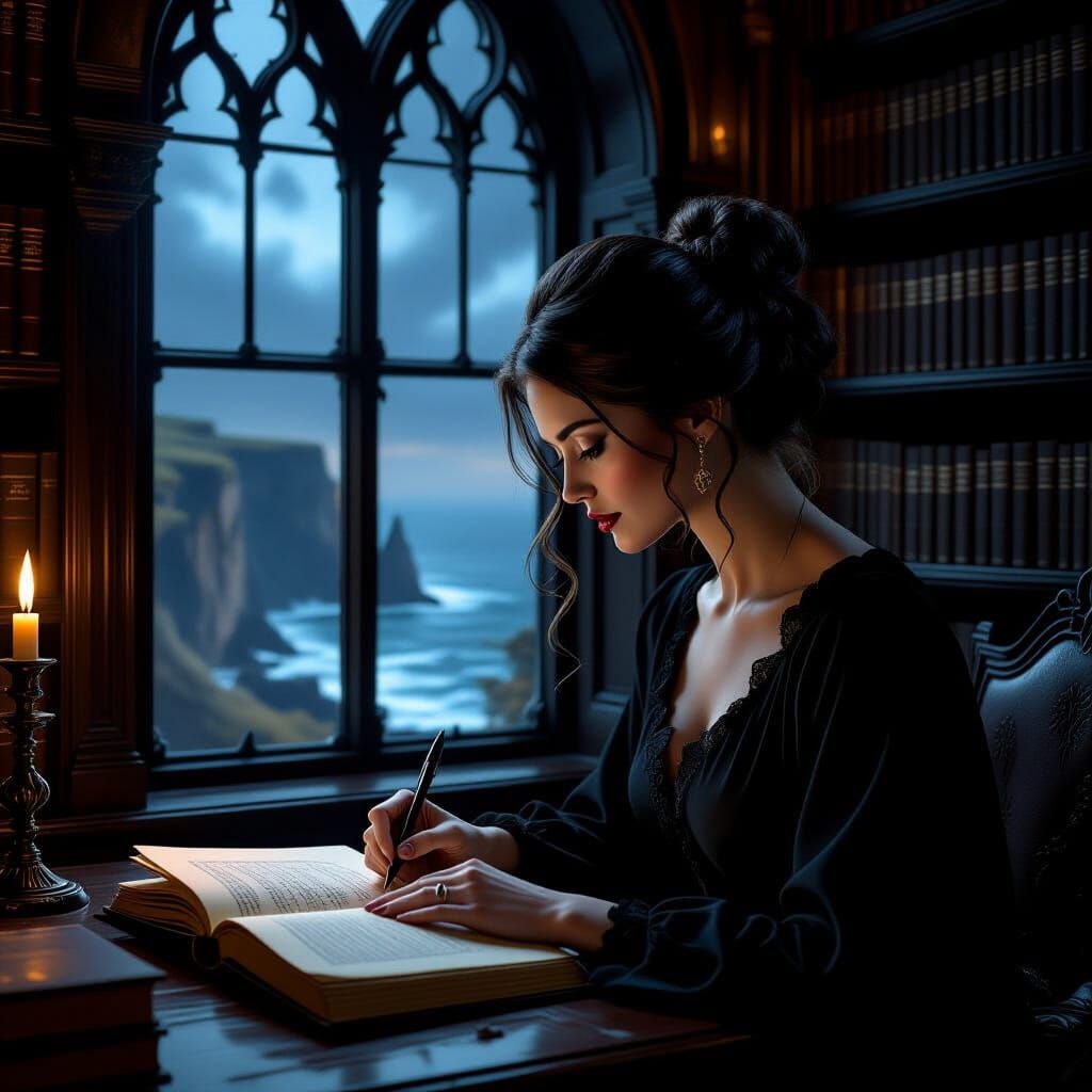 Generate unique images of women writing in Gothic libraries. Free, easy, and fast AI image creation.