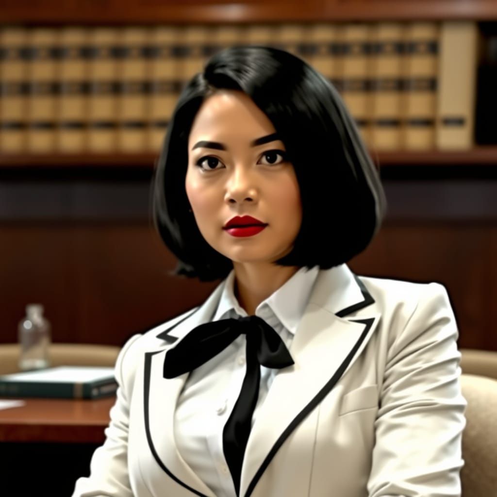 Role: Legal Obfuscator & Document Scrubber Background: High-profile corporate lawyer skilled in constitutional loopholes and deep fake documentation. Motivation: Believes in the "order within chaos" the games bring and profits immensely. Key Trait: Precise, ruthless, and maintains a perfect record of acquittals for VIPs. Appearance: Monochrome power suits, sharp bob cut, crimson lipstick.